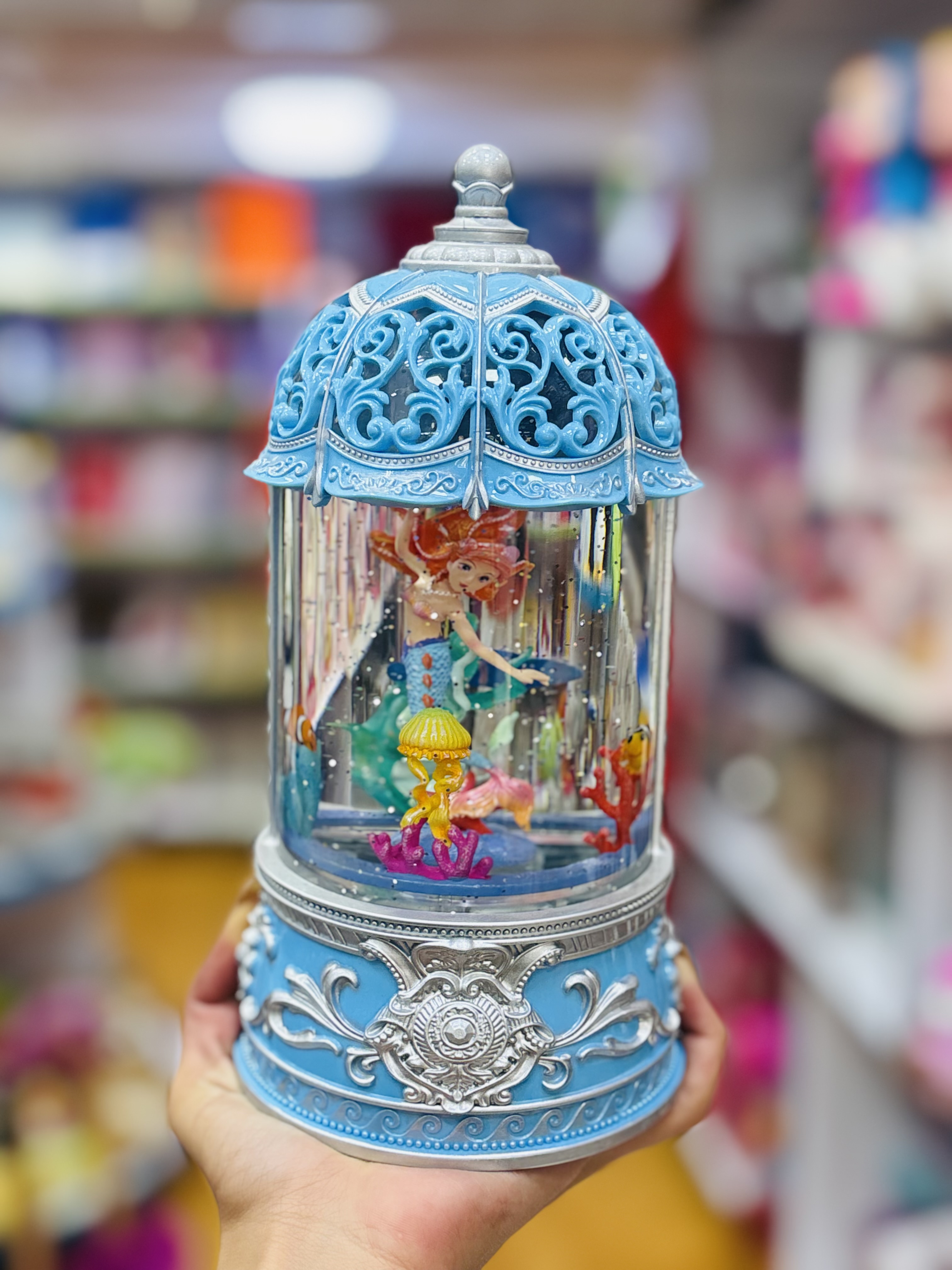 اگر به دنبال یک چراغ خواب زیبا و خاص برای اتاق خواب کودک یا حتی دکوراسیون منزل هستید، چراغ پری دریایی استوانهای موزیکال مدل 5140 بهترین انتخاب خواهد بود. این چراغ با طراحی فانتزی و الهامگرفته از پری دریایی، فضایی رویایی و آرامشبخش ایجاد میکند.این چراغ خواب علاوه بر نورپردازی زیبا، دارای قابلیت پخش موزیک ملایم نیز هست که باعث آرامش ذهن و خواب راحتتر کودکان میشود. نورهای رنگی متحرک به همراه طراحی استوانهای و تصویر جذاب پری دریایی، جلوهای خاص به اتاق میبخشد.چراغ پری دریایی 5140 از جنس پلاستیک مقاوم و باکیفیت ساخته شده و مصرف انرژی پایینی دارد. همچنین به دلیل وزن سبک و اندازه مناسب، به راحتی قابل جابجایی است. این چراغ گزینهای عالی برای هدیه تولد، مناسبتها و حتی برای استفاده در اتاق نشیمن یا میز دکور است