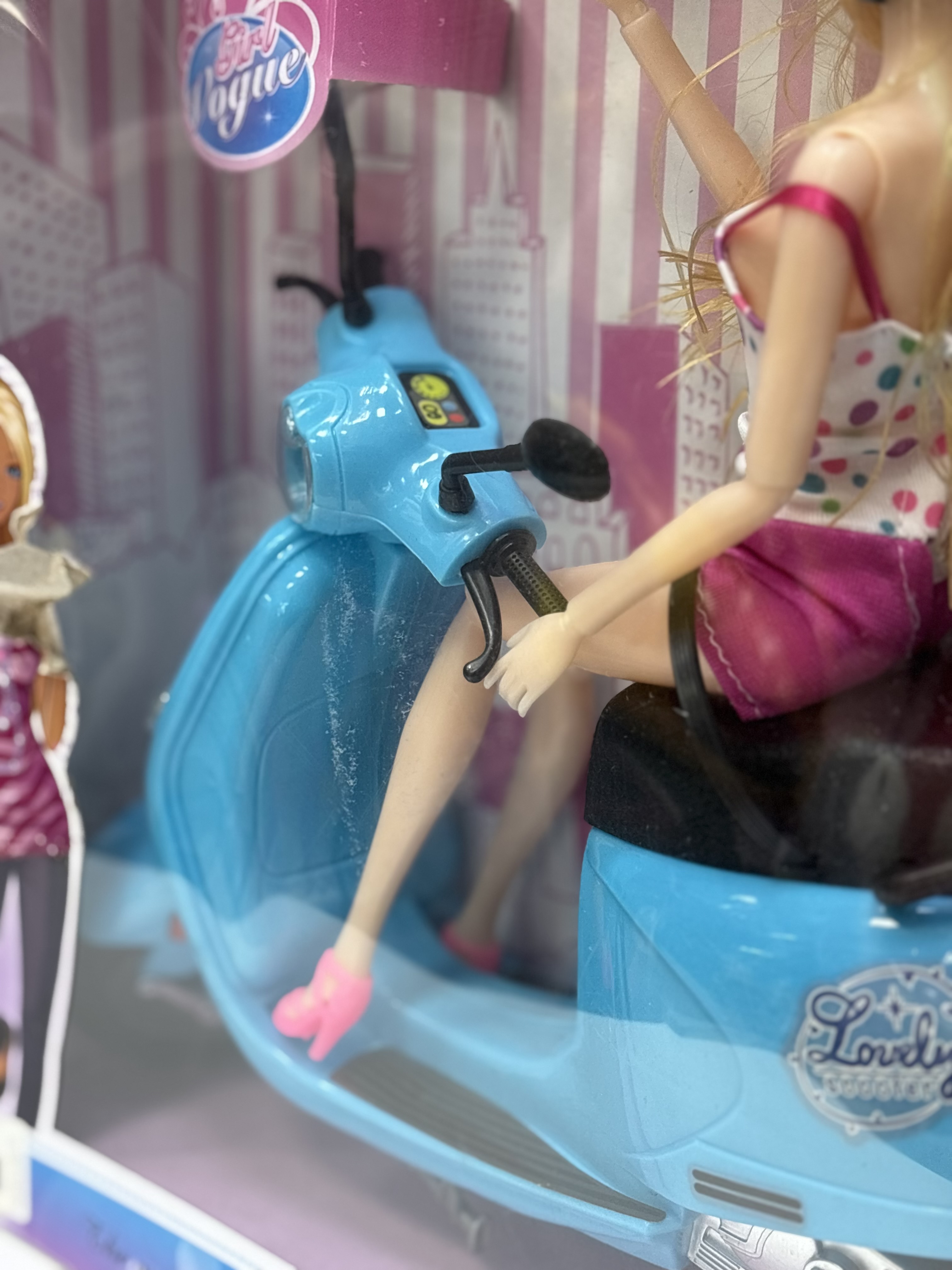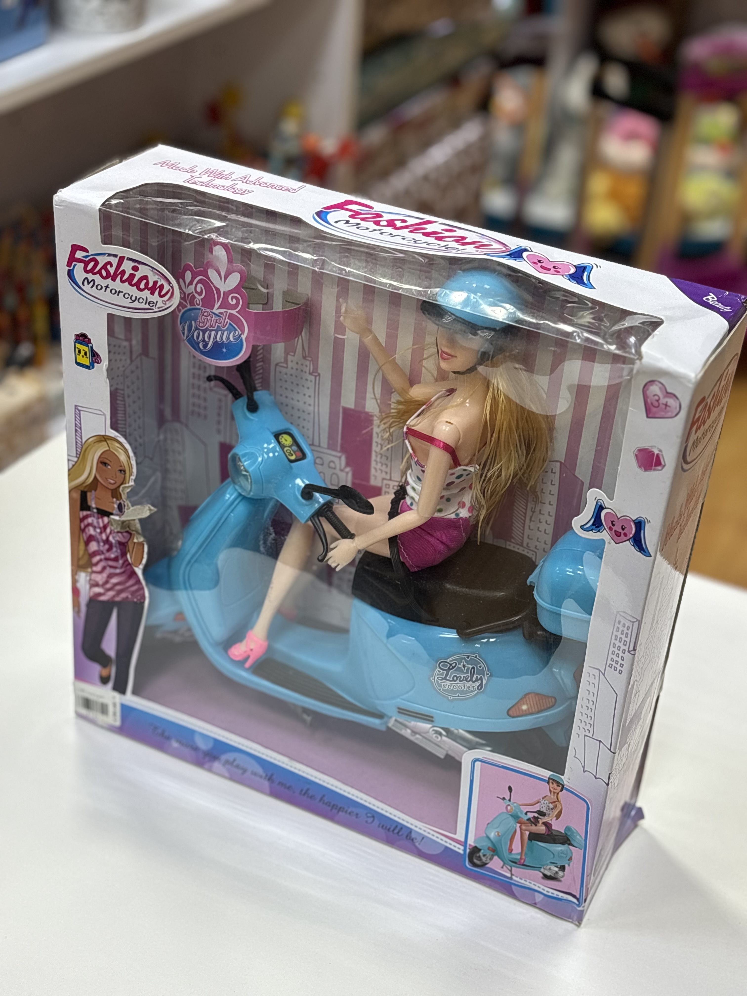 عروسک فشن وگ Fashion Vogue: یک مجموعه جذاب و کامل برای دختران علاقهمند به ماجراجویی و مد! این ست شامل یک عروسک با موهای بلند و لباسهای شیک، همراه با یک موتورسیکلت اسکوتر آبی رنگ و یک کلاه ایمنی (کاسکت) است. مفصلهای حرکتی عروسک به او اجازه میدهد تا به راحتی روی موتور بنشیند. این اسباببازی به تقویت تخیل و نقشآفرینی در کودکان کمک میکند و برای سنین بالای ۳ سال مناسب است. جنس محصول از پلاستیک با کیفیت و غیر سمی است. یک هدیه فوقالعاده برای تولد و مناسبتهای خاص. همین حالا برای یک ماجراجویی هیجانانگیز آماده شوید!